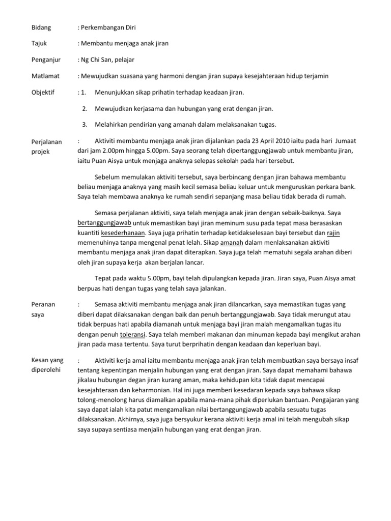 Contoh Laporan Kerja Amal Contoh 1 Contoh Sahaja Jangan Tiru Bidang Perkembangan Diri Tajuk Membantu Menjaga Anak Jiran Penganjur Ah Beng Pelajar Course Hero