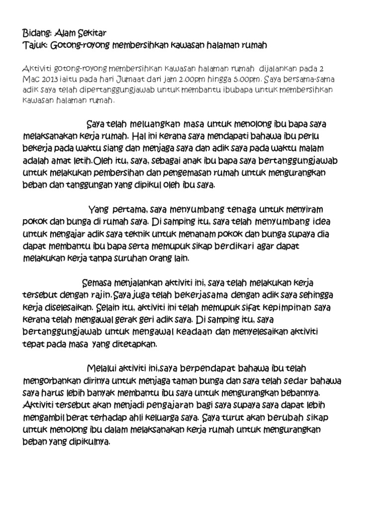 59711996 Kerja Amal Pdf Tajuk Membantu Ibu Membuat Kerja Rumah Tarikh 2 April 2010 Penganjur Ibu Lokasi Rumah Matlamat Mengurangkan Beban Ibu Dan Course Hero