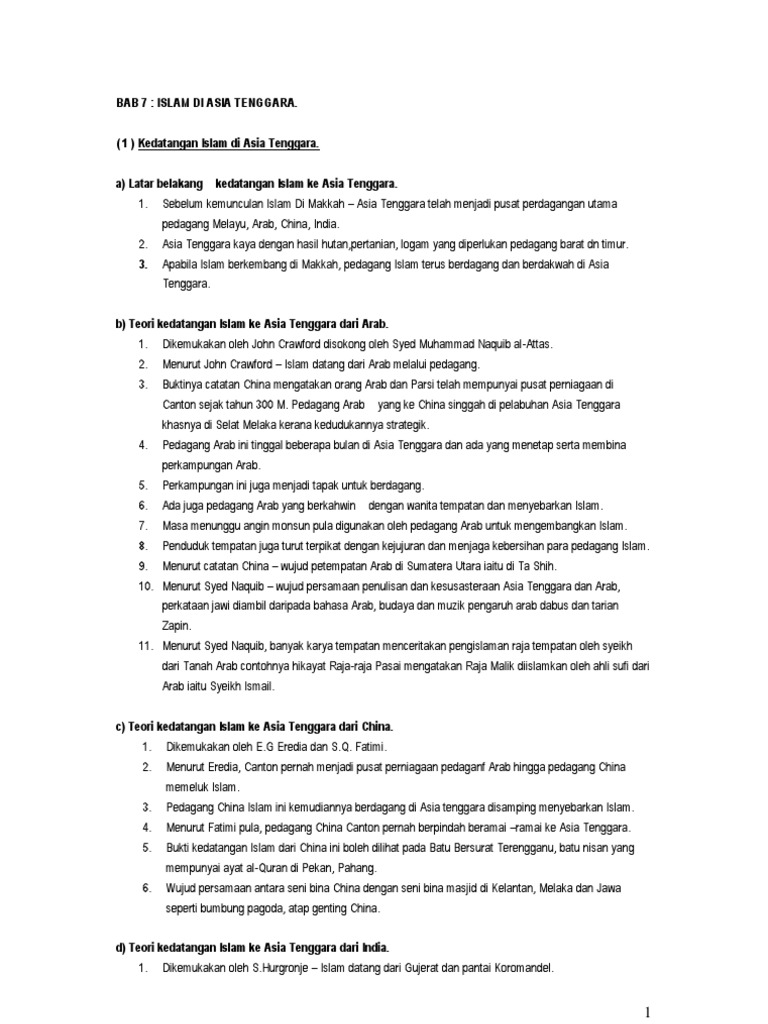 Bab 7 Islam Di Asia Tenggara Kedatangan Islam